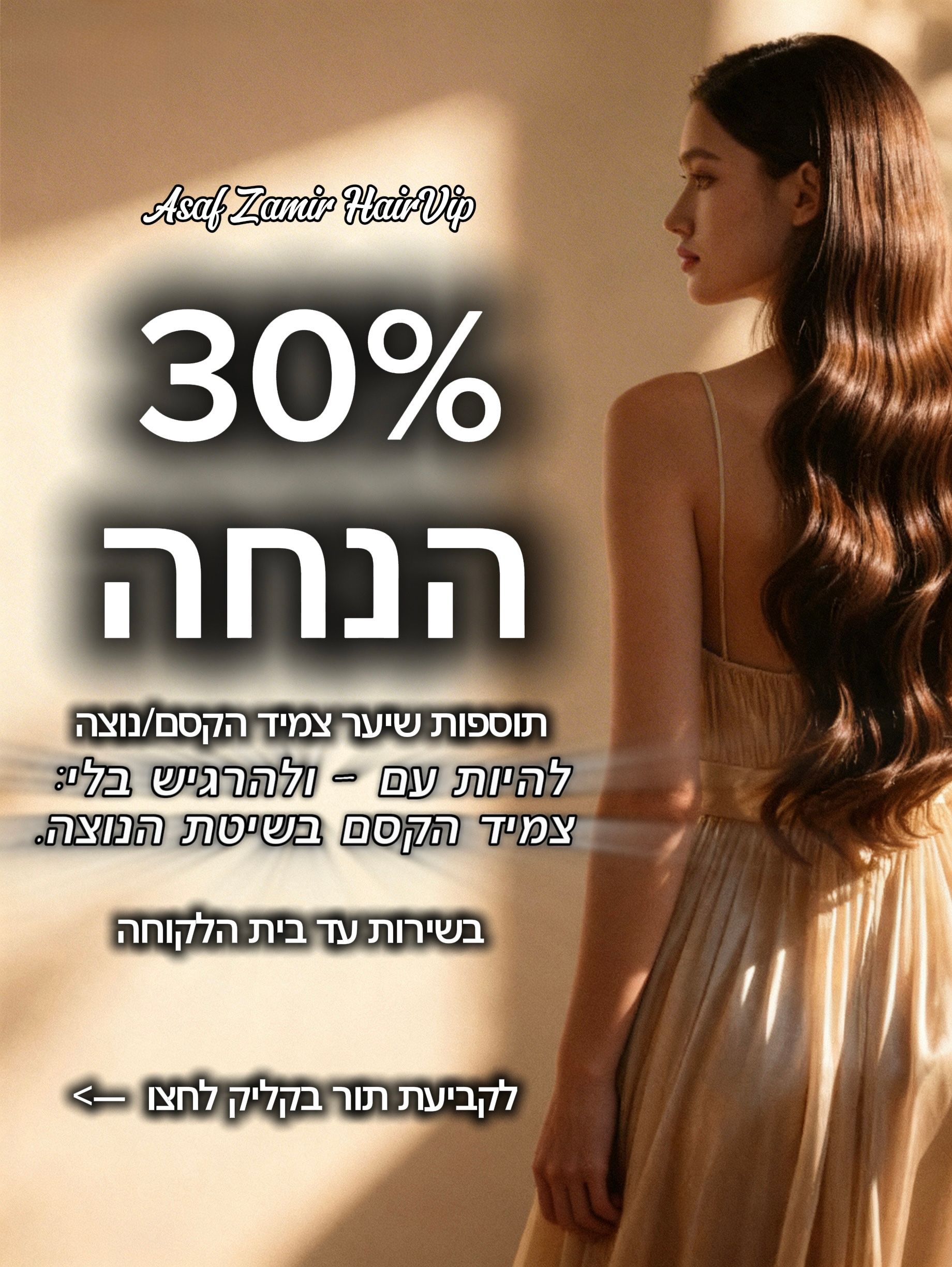 אסף זמיר עיצוב שיער VIP הוא שירות מספרה נייד המביא את טיפוח השיער המקצועי אליך עד הבית. אנו מציעים שירותי החלקה אורגנית ותוספות שיער טבעיות ומתמחים במוצרים איכותיים, בעבודה סטרילית ובטיפוח אישי. חזוננו הוא לספק לך חווית יופי ונוחות אישית בלתי מתפשרת הכוללות בסיום הטיפול – ניקיון מקצועי עם שואב ריצפה, כדי שתיהני מהתוצאה בלי לכלוך